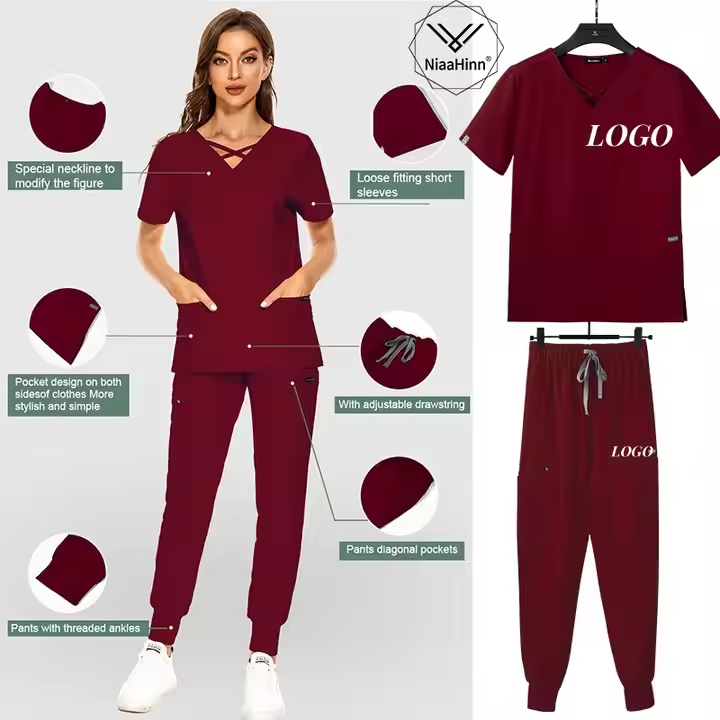 Best Custom Scrubs Women Set Hospital Nurse Uniform Medical Nurse Scrub Polyester Rayon Spandex Stretch Scrubs Uniforms Sets