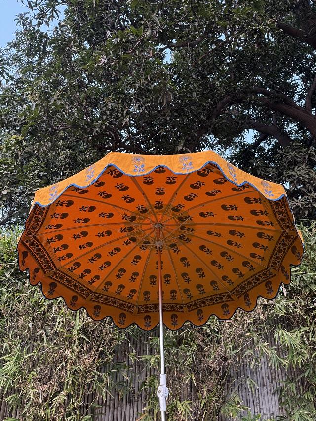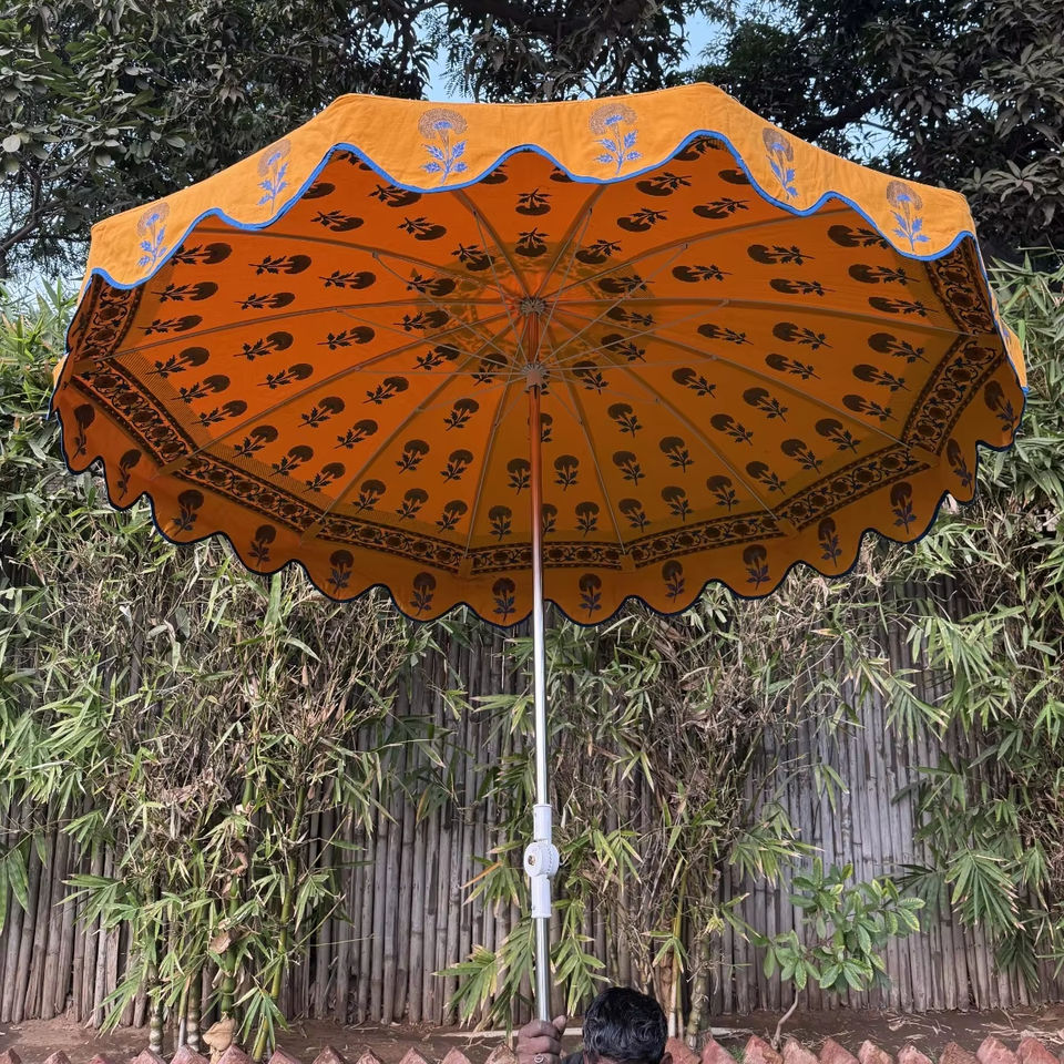 Best Customized Orange Parasol Umbrella Elegant Wooden Frame Modern Simple Manual Control Big Print for Garden Shade New Arrival