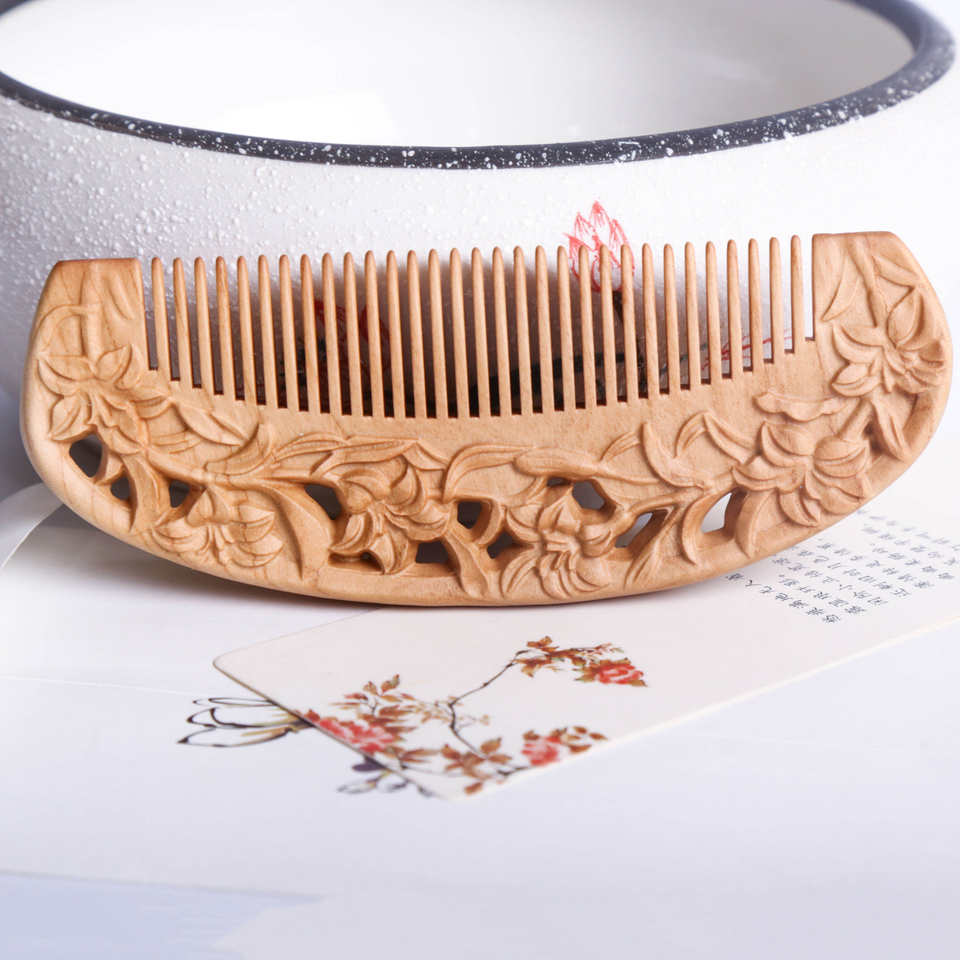 Wooden Fine Tooth Eco-Friendly Handcrafted Religious Hair Comb for Household Shower Wet Curly Hair Massage and Beard Care