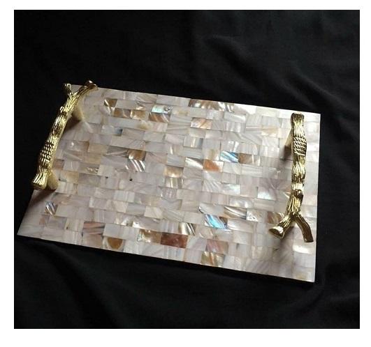 Best Design Acacia Wood Mop Inlay Tray Quality Handicrafts for Serving Dessert Mother Pearl Inlay Ramadan Eid Gift Serving Tray
