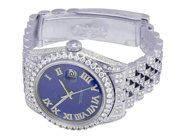 Best Design Blue Bezel VVS Moissanite Diamond Roman Dial Mechanical Automatic Iced Out watch Hip Hop Luxury Fashion At Low Price