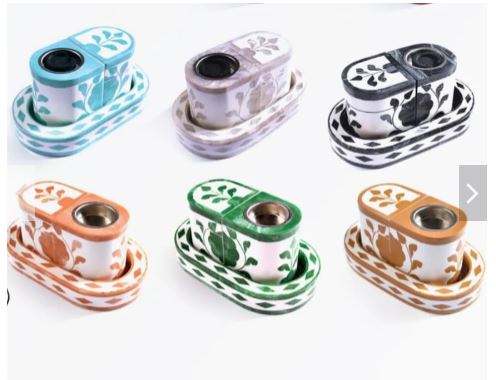 Luxury Purple Bone Inlay Bakhoor Burner Set with Tray Handmade Mubkhar Oud Incense Holder Indian Wood Handicrafts Home Decor