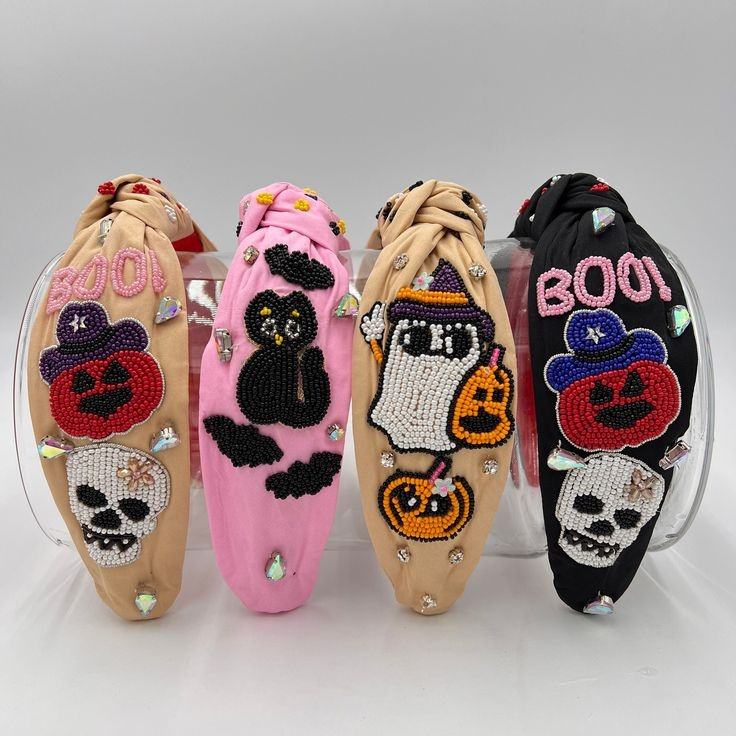 Best Design Custom Luxury Hand-Beaded Halloween Knotted Sequin Ghost Skull Pumpkin Padded Headbands Hairbands Accessories 2026