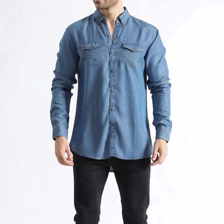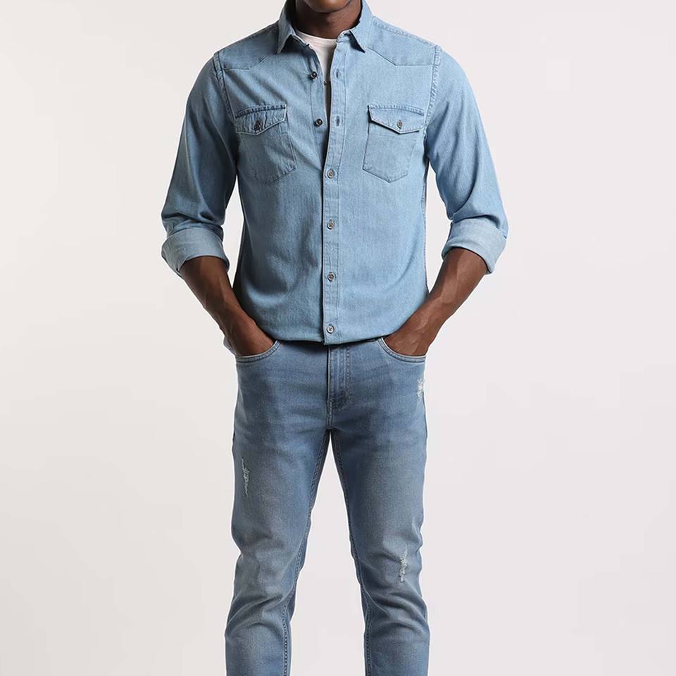 Best Design Front Button T-shirt For Men Soft Fabric Made Long Sleeve Denim Shirt Casual Wear 100% Cotton Jeans Denim Shirt Boys