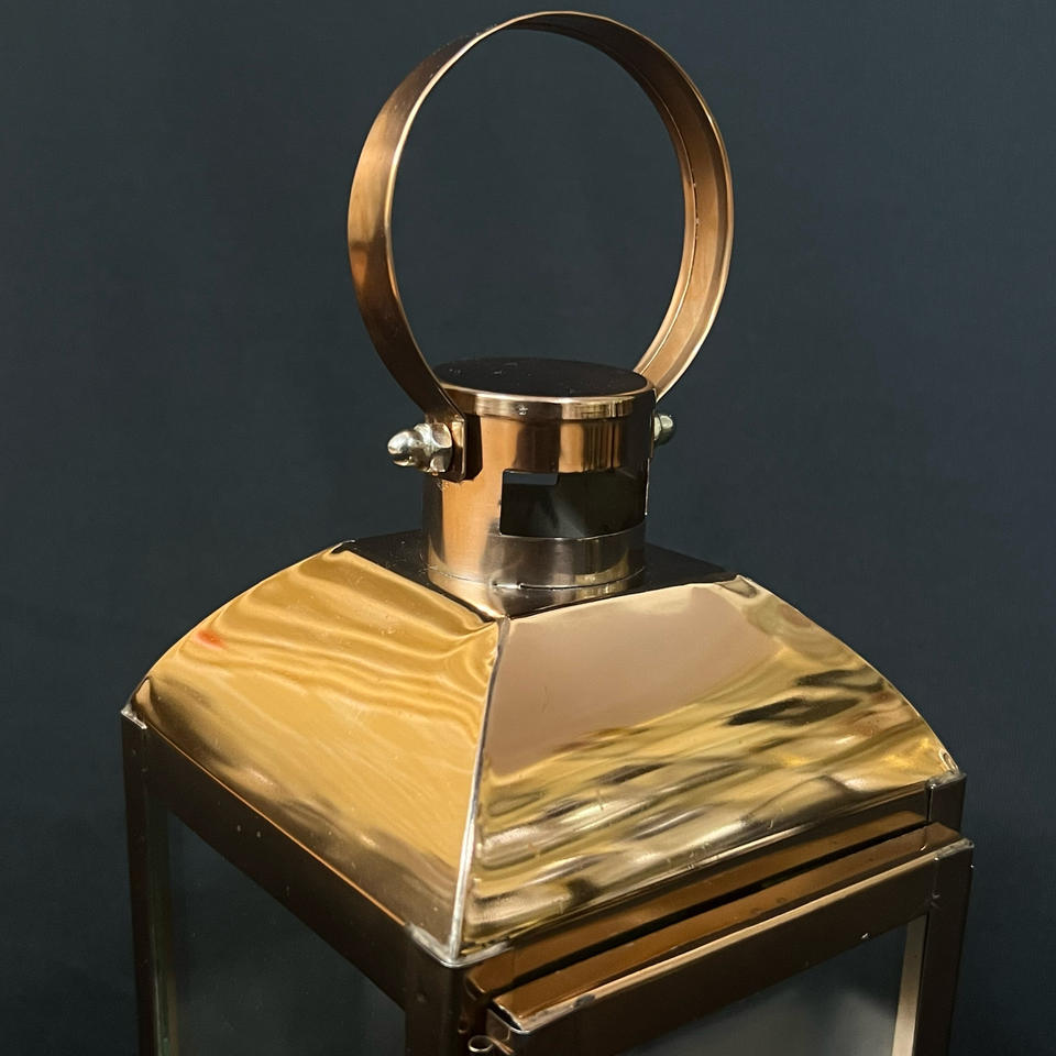 Latest Hot Selling Stainless Steel Mini Rose Gold Handmade Eco-Friendly Christmas Candle Holder Lantern for Table Hanging