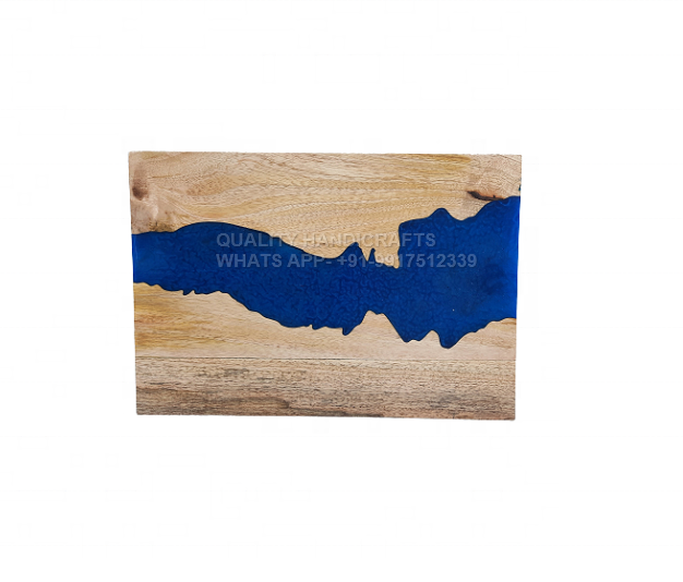 Best Design New Blue Acacia Wood & Epoxy Resin Natural Finish Serving Board Kitchenware Chopping Block Hotel & Restaurant Use