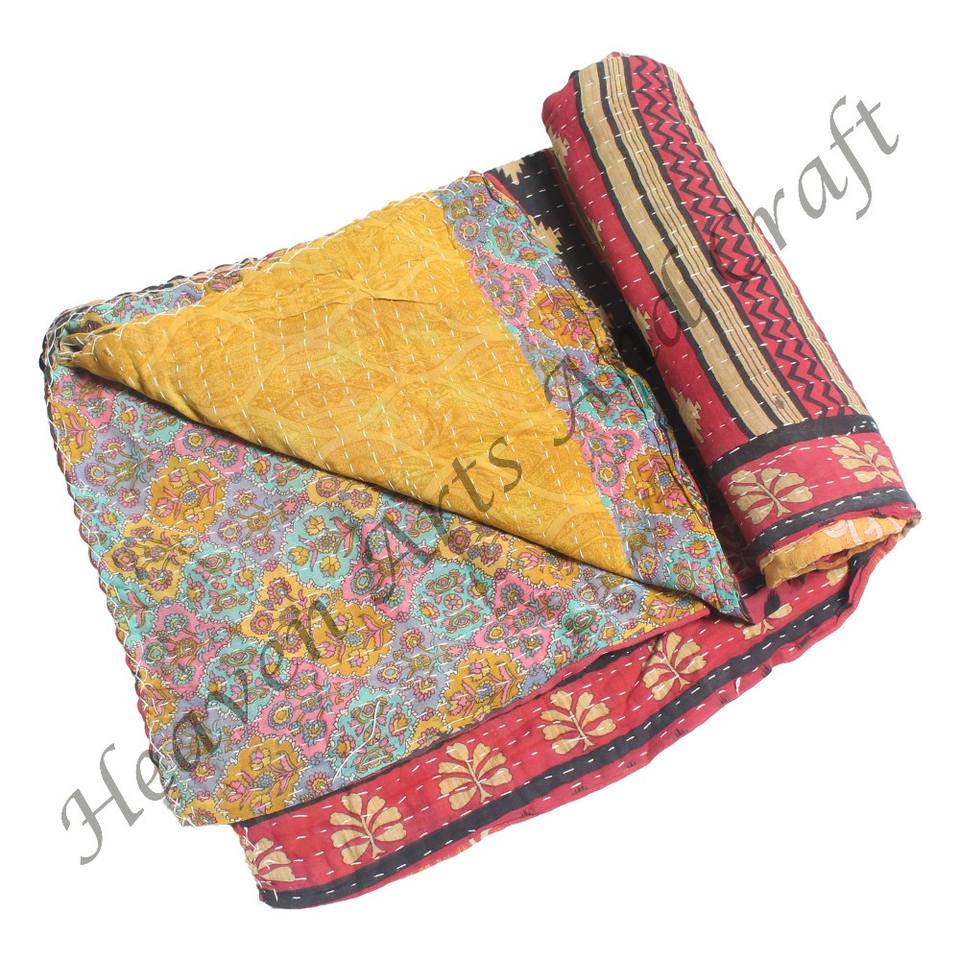 Best Design Reversible Color Kantha Quilt for Home and Hotel Indian Reversible Hand Stitched Heavy Throw Old Sari Blanket Patch