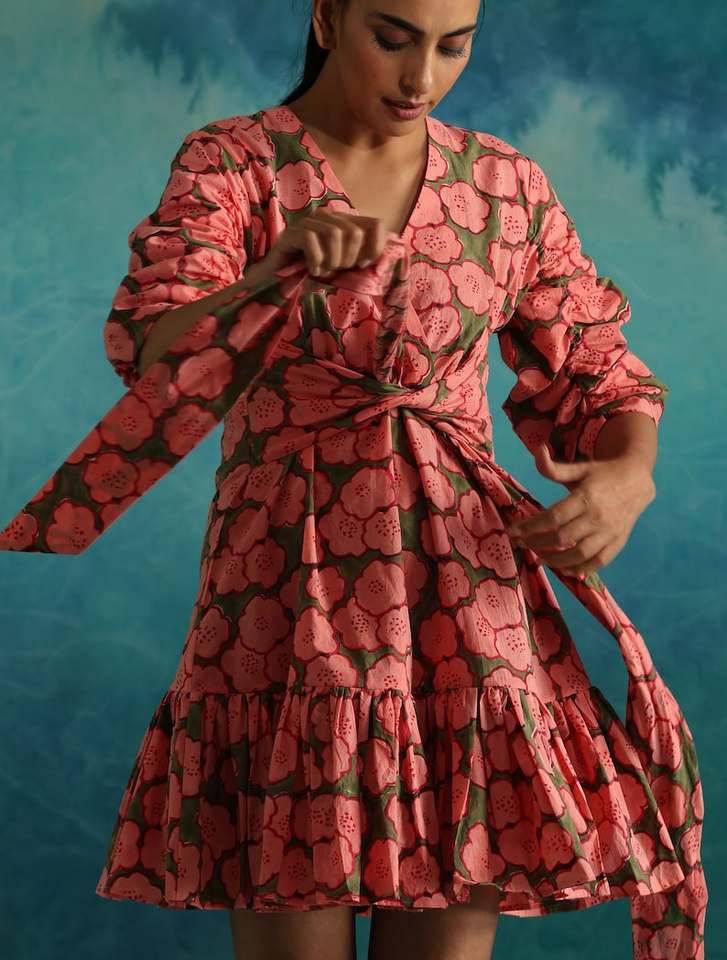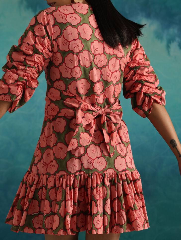 Best Designer Women's Long Max Dresses High Quality New Design Frill Trim Ditsy Printed Long Sleeves Shirred Waist Button White