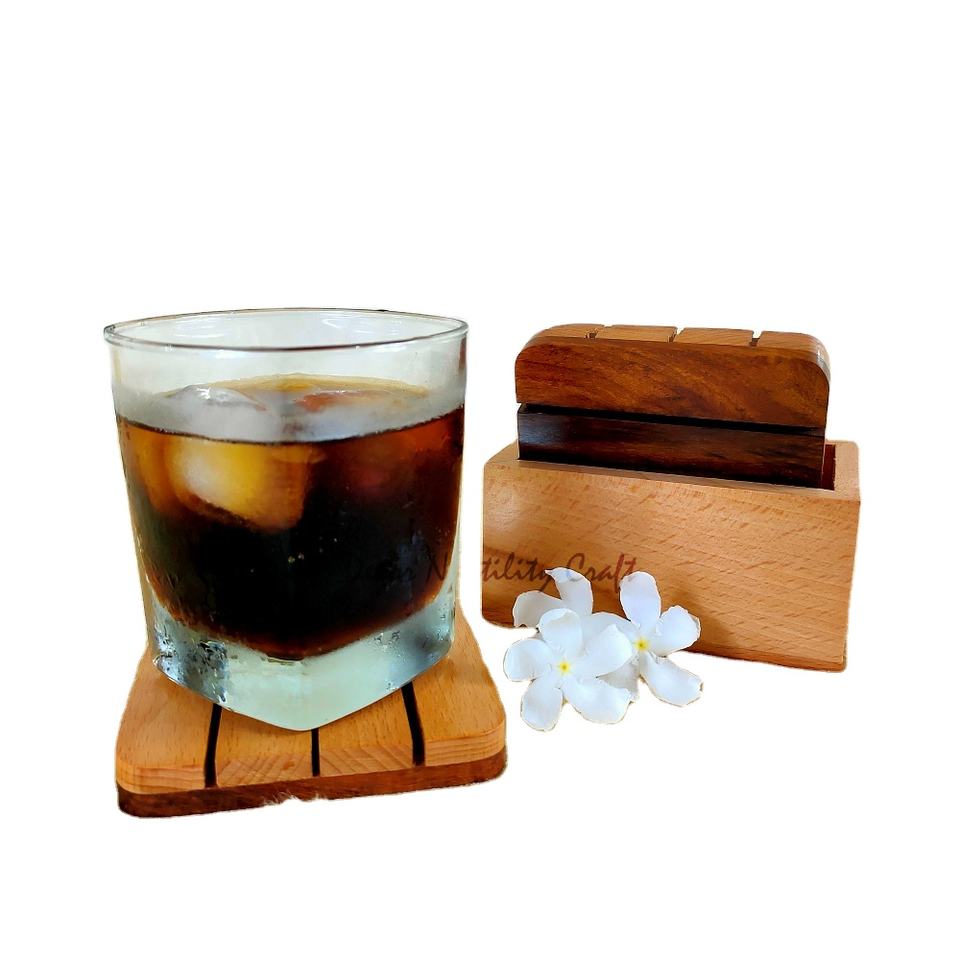 Best Eco-Friendly Set 4 Acacia Wooden Coasters Square Pattern Dining Table Christmas Mat Linear Design Classic Bulk Serving
