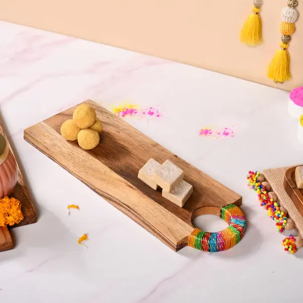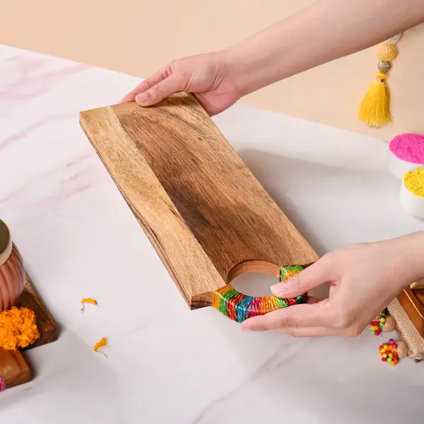 Best Eco-Friendly Acacia Wood Serving Platter with Gold Zari Embroidery Long Slate Serving Tray