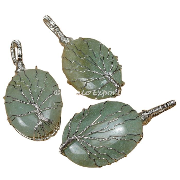 Best Exporter Silver Wire Wrapped Green Aventurine Fine Pendants & Charms Wholesale