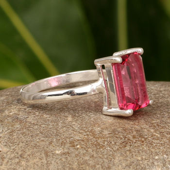Best Gift Idea Top Selling Women's 925 Sterling Silver Ring Red Tourmaline Quartz Baguette Shape 10x14mm Rose Gold Solid Double