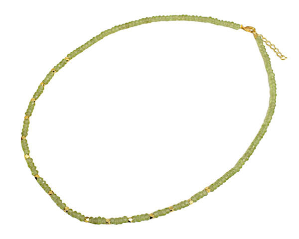 Best Gift Valentine's Day New Year Peridot Gemstone Gold Plated Beads Link Chain Necklace Diamond Pearl Yellow Gold Ball Shape