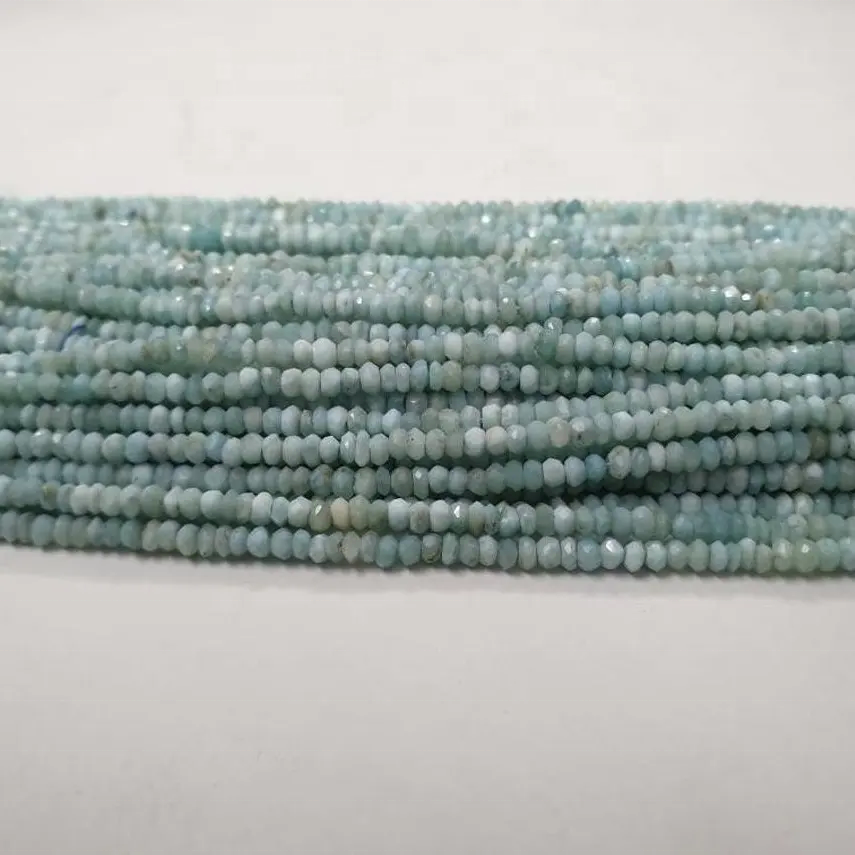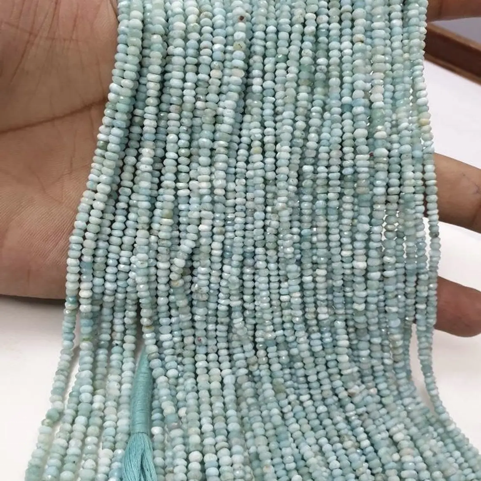 Best Grade Highest Quality Jewelry Making 4mm Natural Larimar Faceted Rondelle Shape Loose Gemstone Beads at Affordable Price