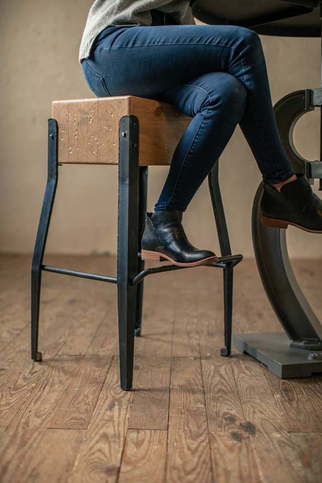 Best Handmade Hand Forged Iron Bar Stool With Natural Solid Wood Block Seat Artistic Metal Frame Kitchen And Counter Cafe