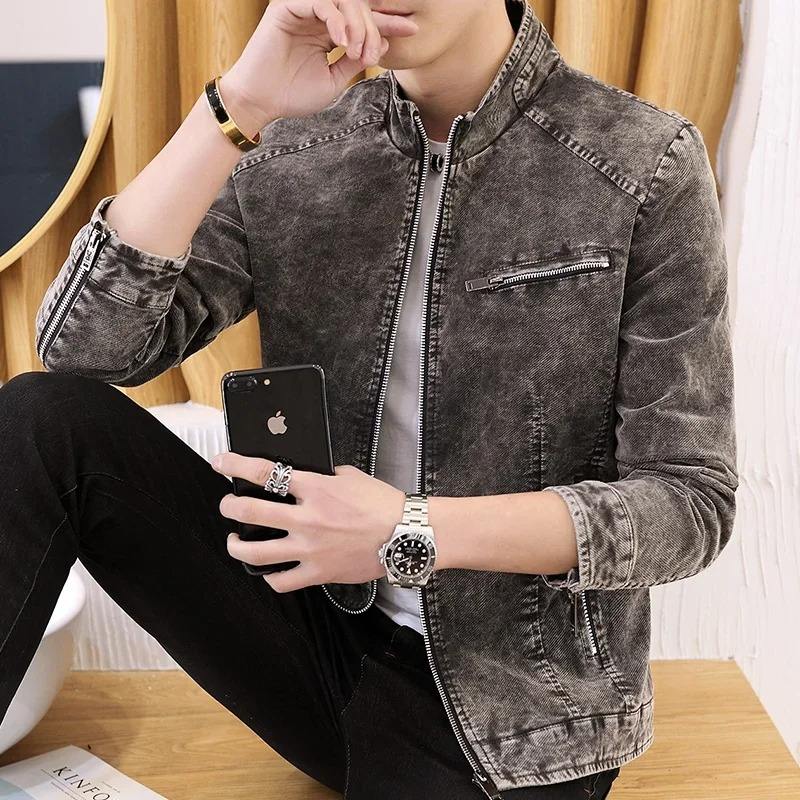 Best High Street Men's Retro Motorcycle Jacket Long Sleeve Zipper Casual Skinny Jeans Stand Hooded Denim Outerwear Winter