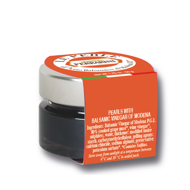 Best Italian FERRARINI 50gr Black Vinegar Pearls Dressing Jar Balsamic of Modena Glass Brewed Bottle and Box Packaging