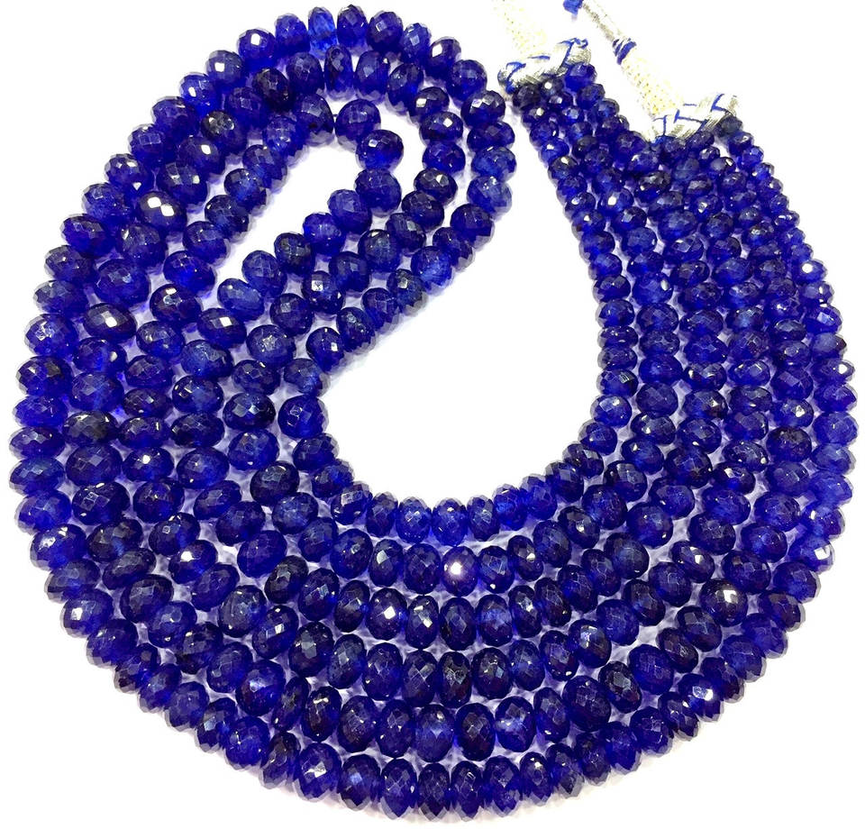 Best Lab Grown Blue Sapphire Beads Necklace Genuine Faceted Round Gemstone IGI Certified 20 Carat Gift for Her