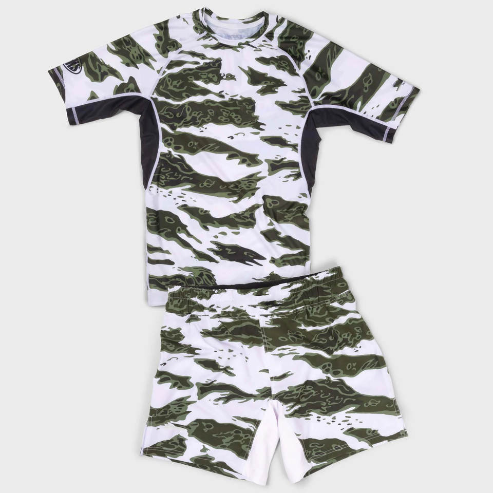 Product name:White tiger camo grappling bjj rashguards Paneled rashguards tops