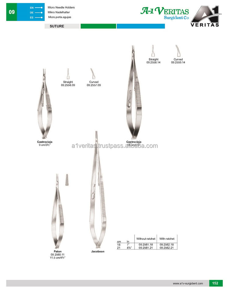 A-1 VERITAS Paton High Quality Reusable 11.5cm Straight Curved Micro-Needle Holders Suture Instrument Set