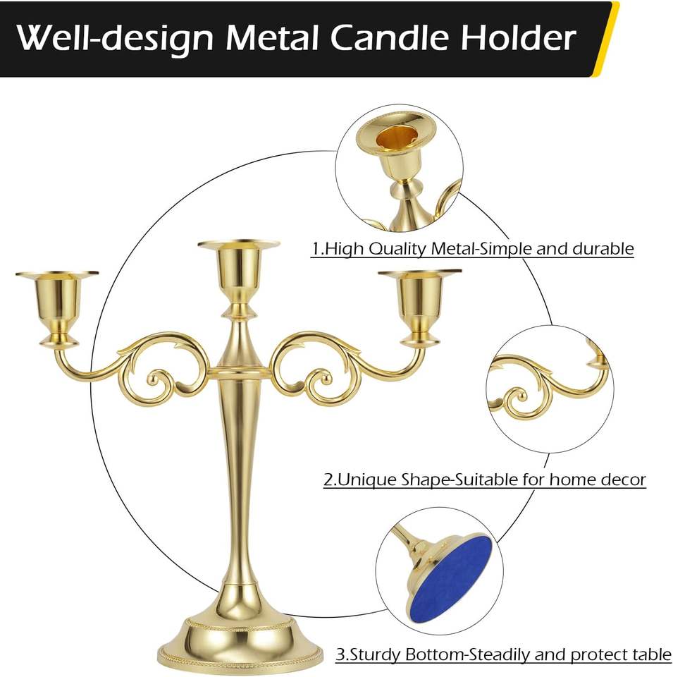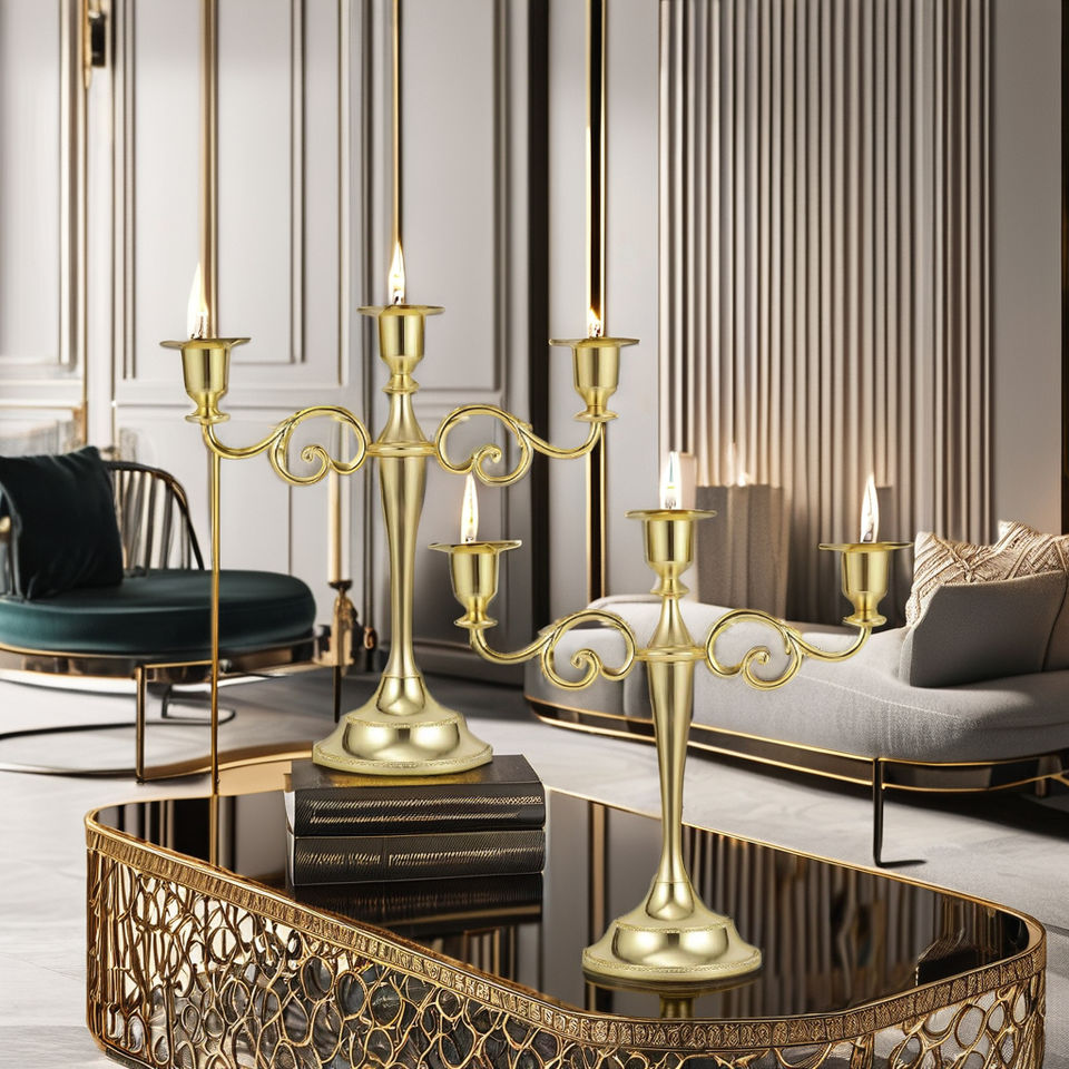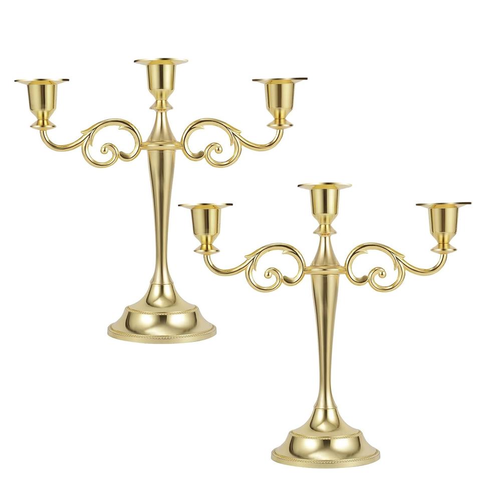 Best Modern GleamSphere Duo Gold 3 armMetal CANDLESTICK HOLDER & High Quality Candle Stand for Wedding & Christmas Decorations