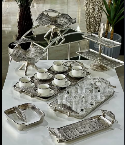 Modern Metal Silver and Gold Trays Bowls Tier Stands Cake Stands Diwali Home Decor Round Dishes