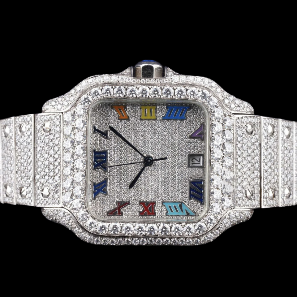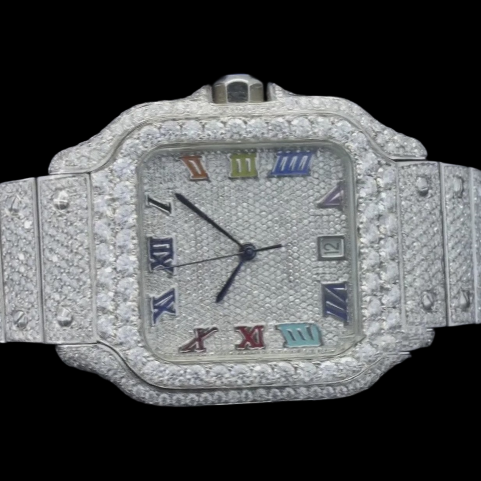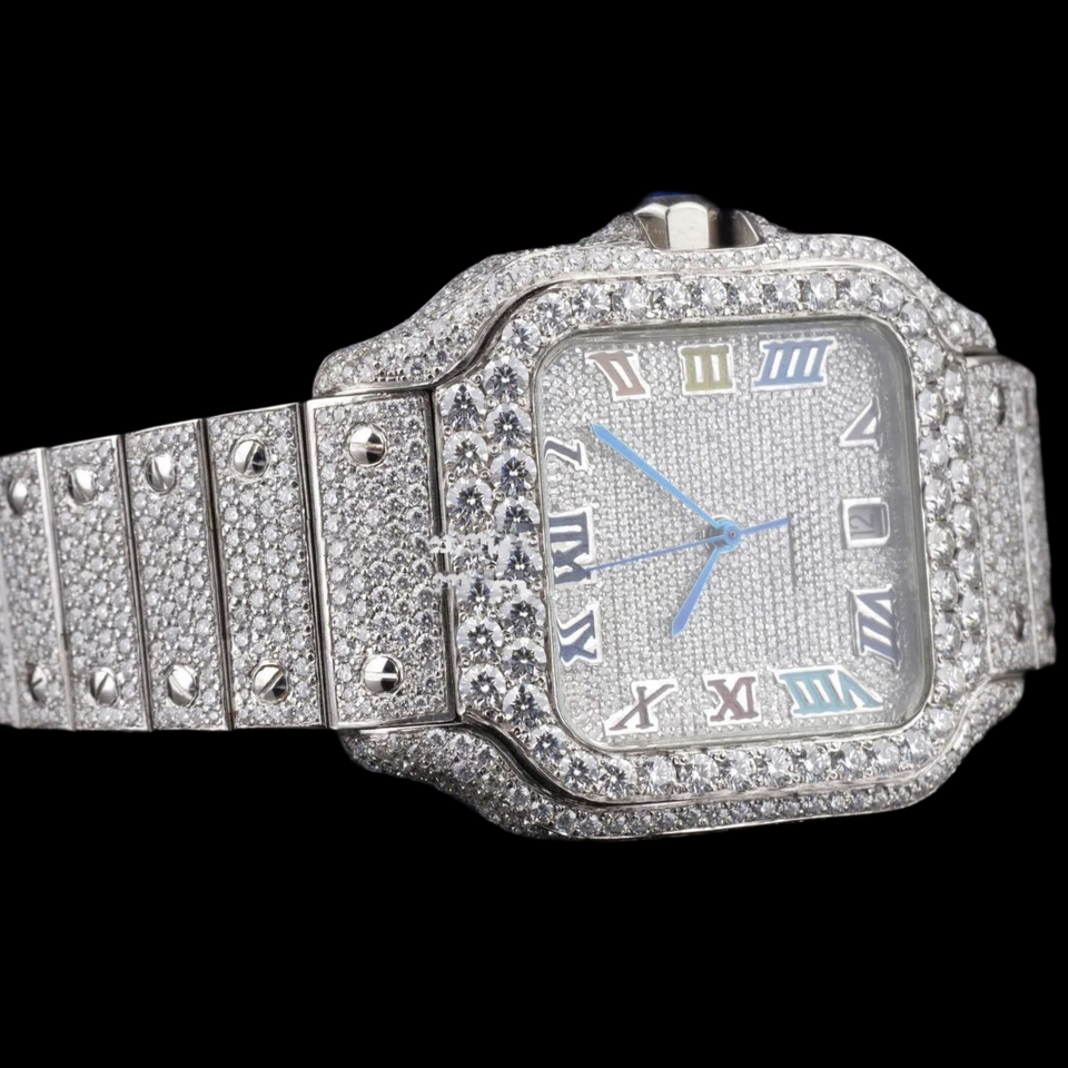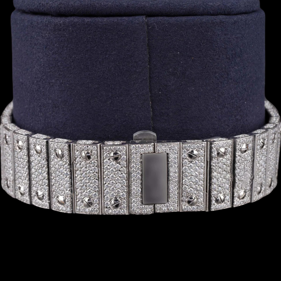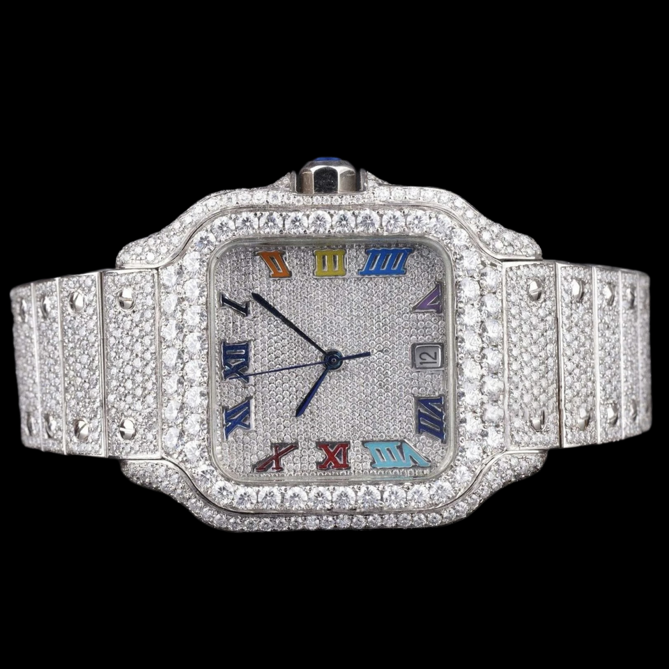 Best Moissanite & Stainless Steel Iced Out Watch Quartz Movement Two-Tone Design Glass Dial 10 Bar Water Resistant Hidden Clasp