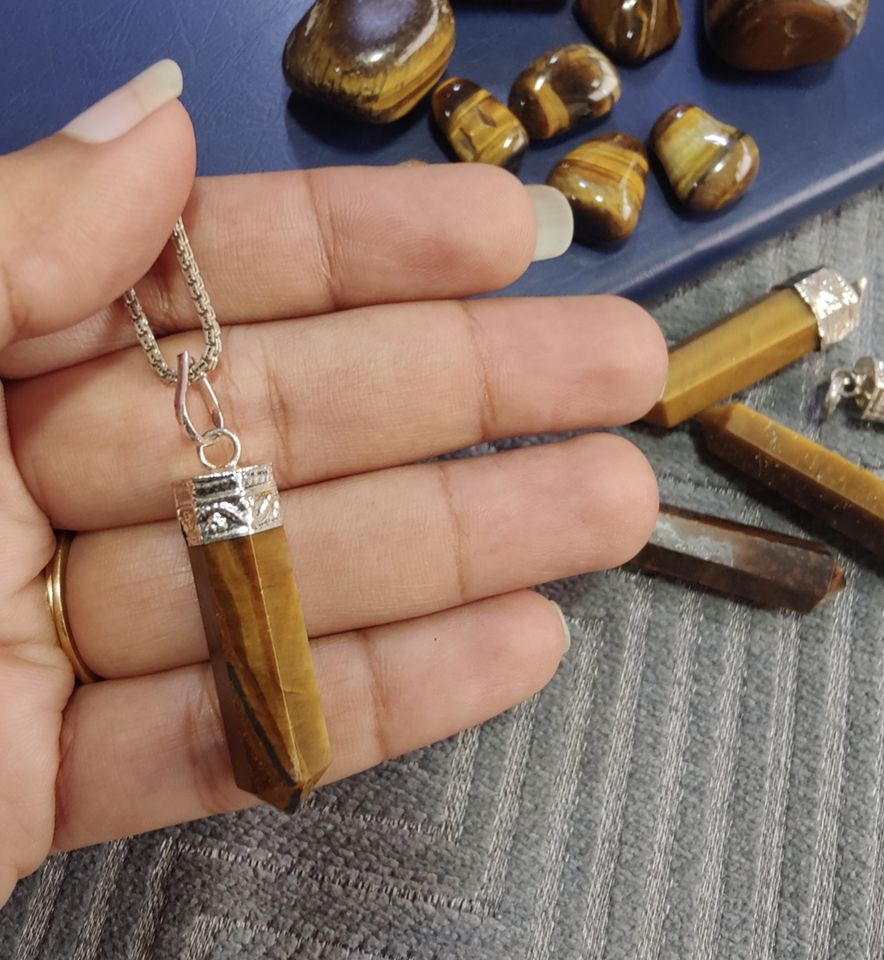 Best Natural Tiger Eye Crystal Point Polished Pendant Necklace For Healing Love And Energy Silver Plated Chain Spiritual Jewelry