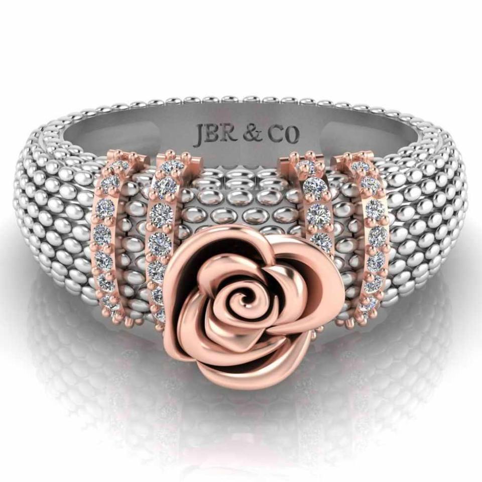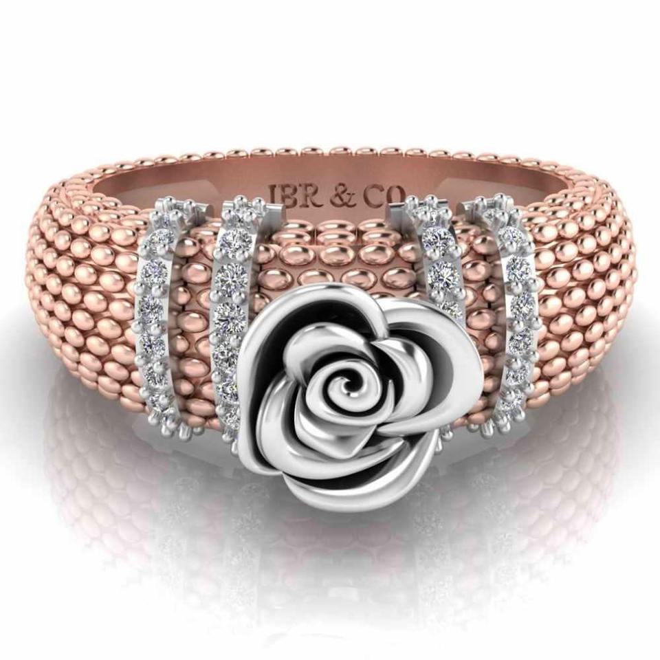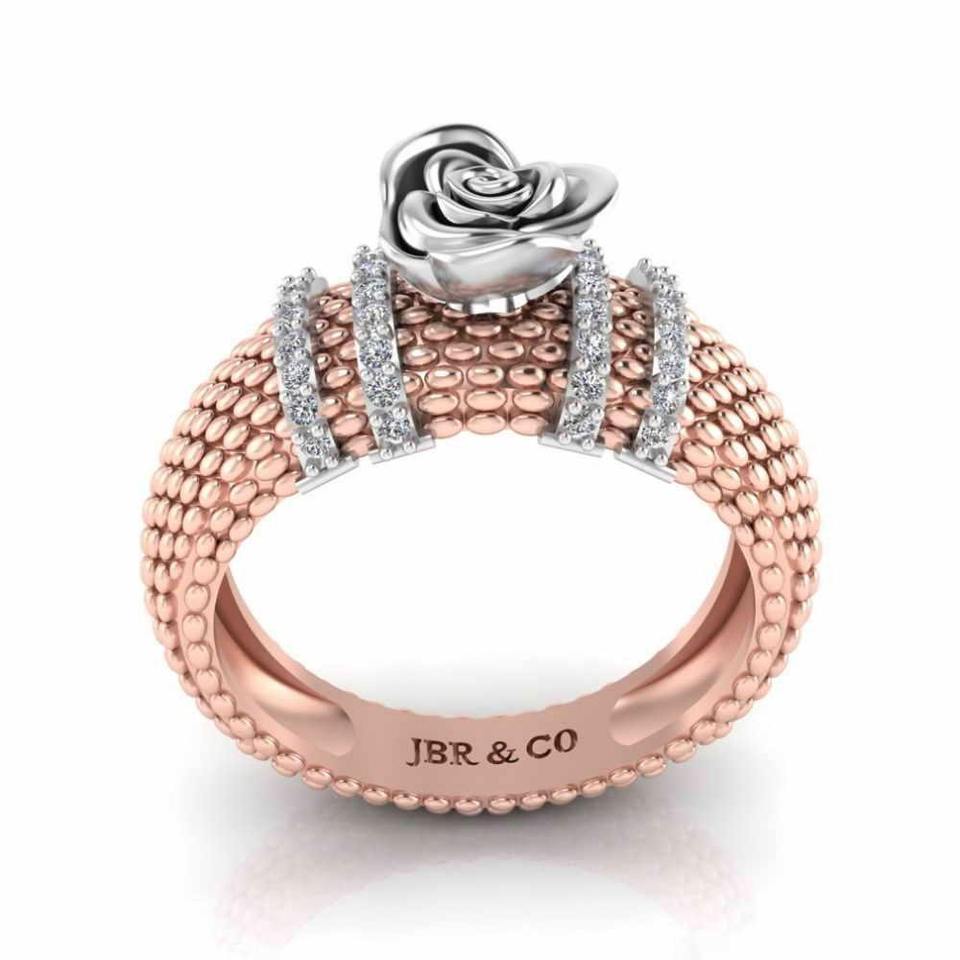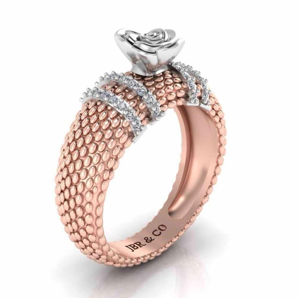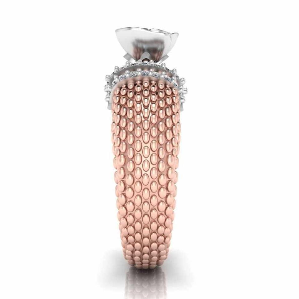 Best Offer Round Diamond Rose Gold Two Tone 925 Sterling Silver Heartily Beads Rose Engagement Ring For Women At Best Price