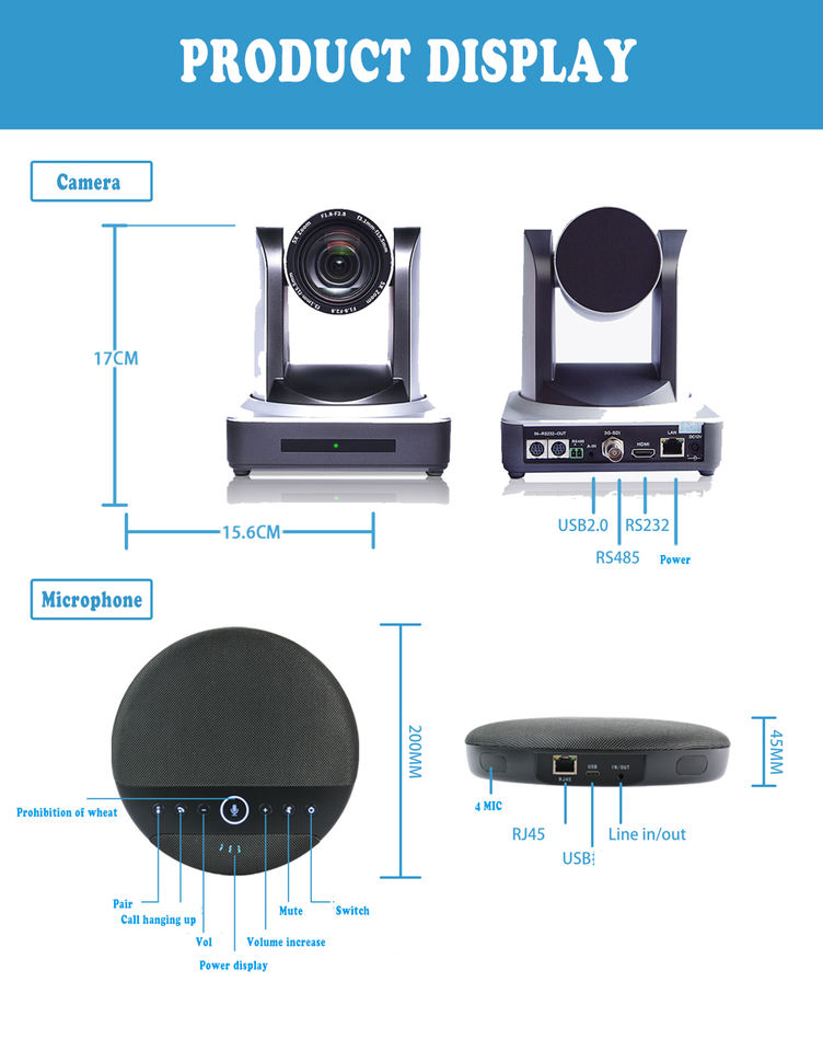 PTZ Cam Selling Point:20X 12XZoom;H264 265 HD1080P; IR Remote:Pan 355° Title120°