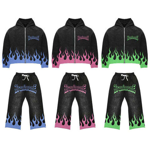 Best Pakistan Clothing Manufacturers Custom Flared Pants Vintage Acid Wash Sun Faded Puff Print Cotton Jogging Tracksuit for Men