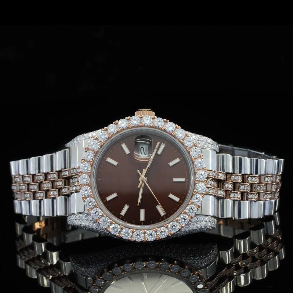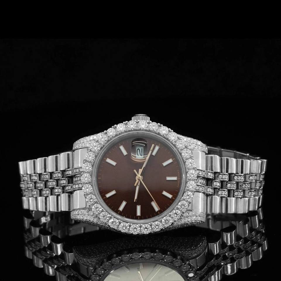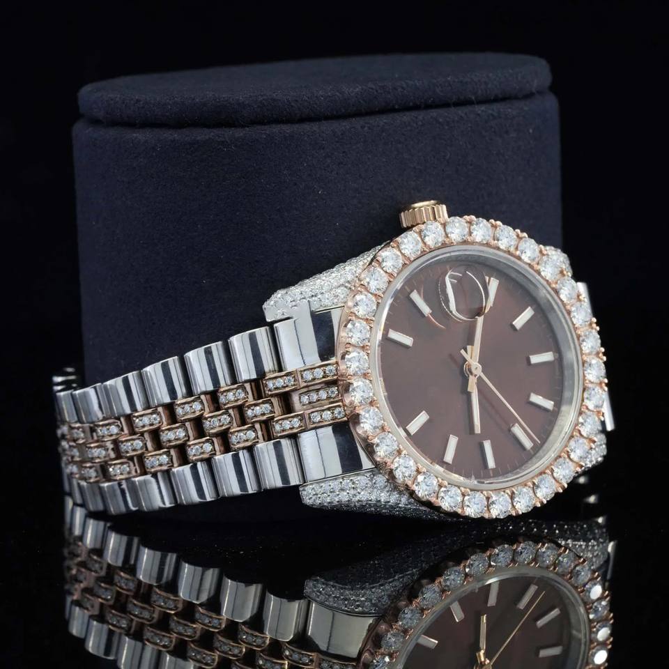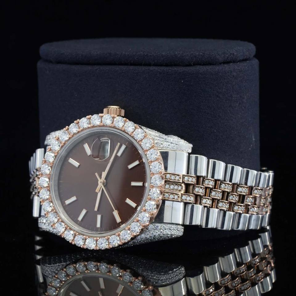 Best Personalized Bezel Luxury Man's Hip Hop Quartz Watch Brown Dial Wholesale Price Iced Out Diamond Watch for Man's