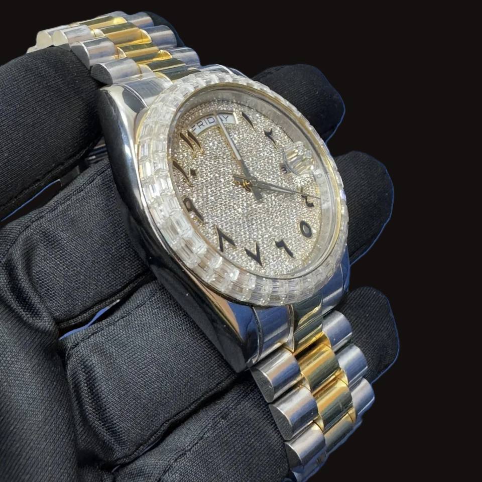 Best Personalized Bling Iced Out Watch Stainless Steel VVS1 Moissanite Diamond Arabic Numerals Two Tone Luxury Wristwatch