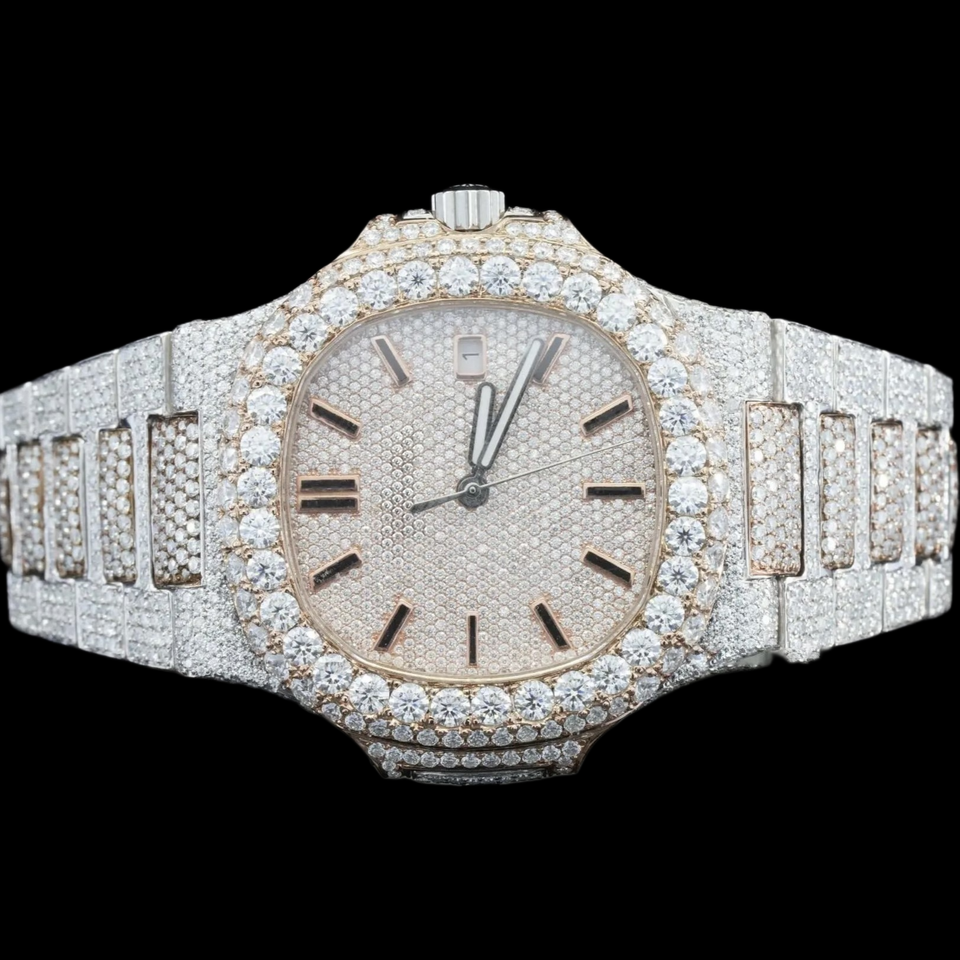 Best Personalized Square Onle Bezel Case With Auto Date Dial Two Tone Moissanite Diamond Customized Hip Hop Trendy Watch