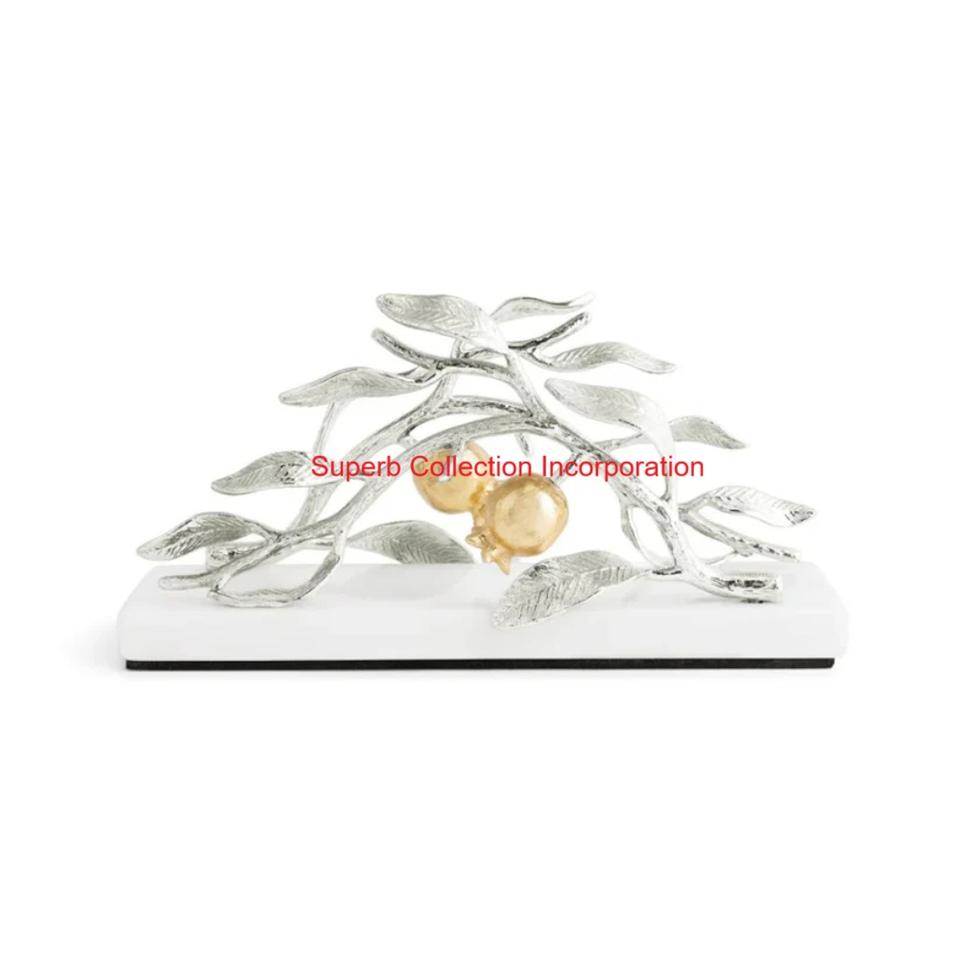 Best Pomegranate Silver & Gold Tone Metal Napkin Holder For Dining Table Decor Luxury Botanical Leaf Design Kitchen Accessory
