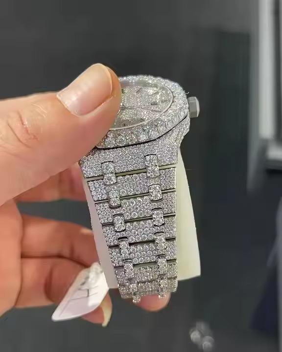 Best Premium Hip Hop Stainless Steel Analog Watch High Quality Fully Iced Moissanite Diamond Water Resistant Case New Arrival