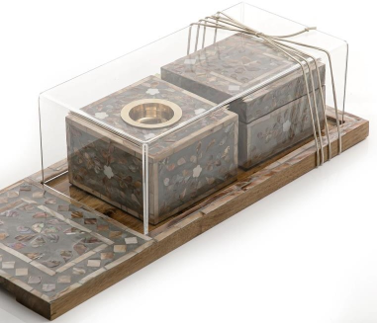 Best Premium Quality Arabic Style Mother of Pearl Incense Bakhoor Buner Set With Inlaid Tray & Box for Wholesale