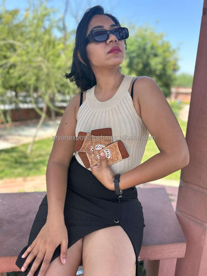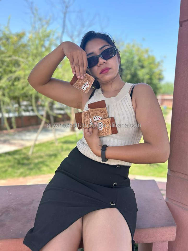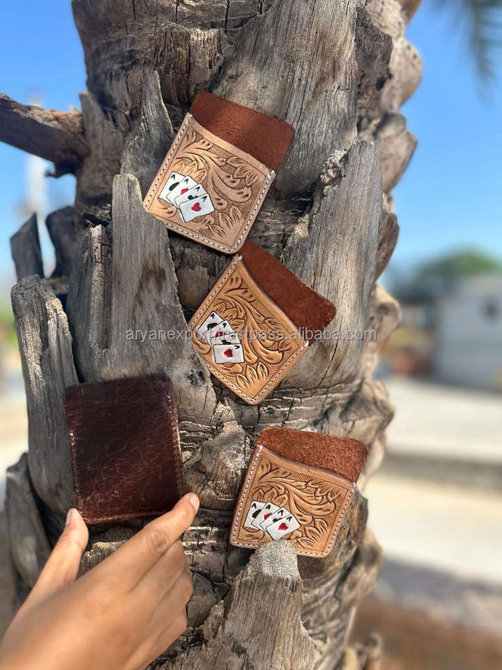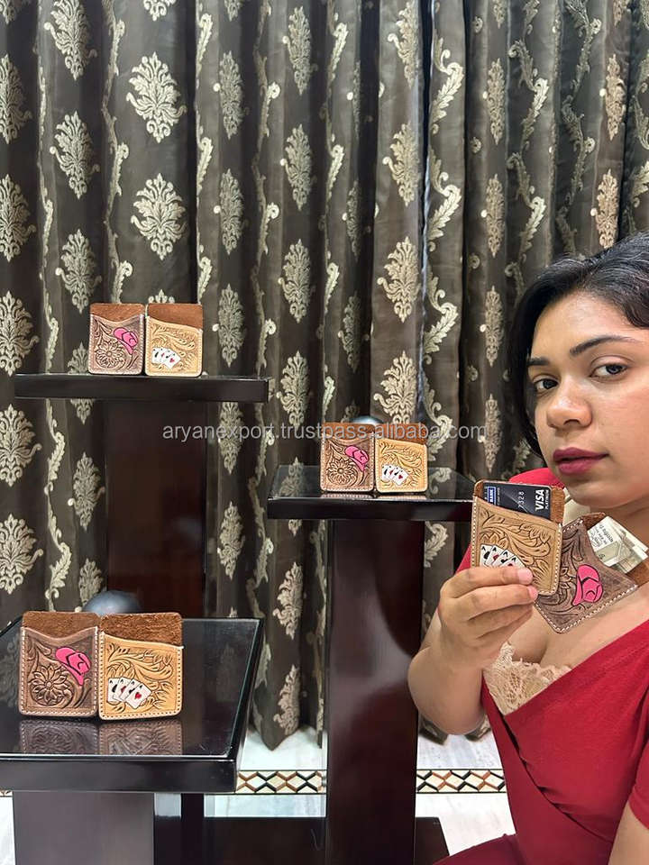 Best Premium Quality Hand Tooled Leather Ace Credit Card Holder Multi Uses Custom Genuine Leather Western Card Holder for Unisex