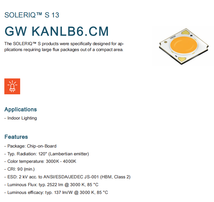 Best Price 18W GW KANLB6.CM-SSTP-30S3 CRI90 2640LM 3000K 4000K Warm White Nature White Osrams Led Cob