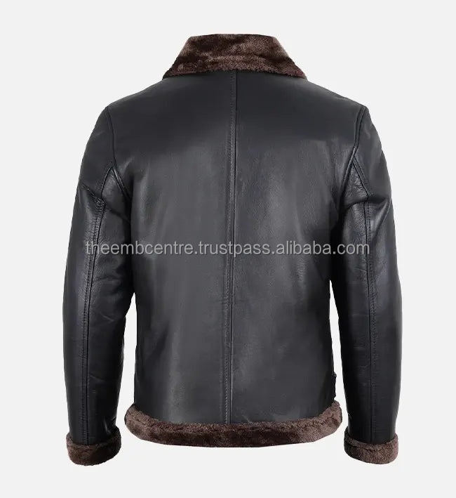 Best Price Custom Made Men's Black Shearling Bomber Leather Jacket Men's Fashion Stand Collar Leather Jacket