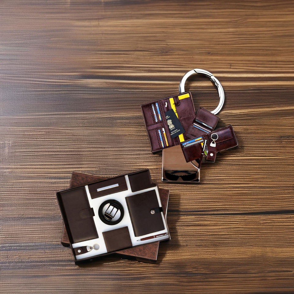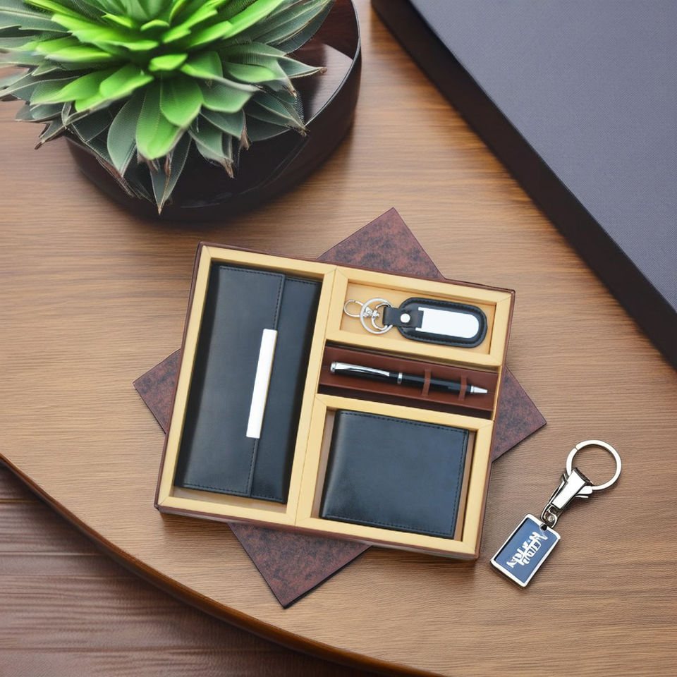 Best Price Customizable Logo Executive Mega Combo Gift Set for Men and Ladies Includes Leather Wallet Keychains Carabiners