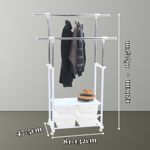 Product Name:Best price unique design double steel rod clothing stand with drawers
