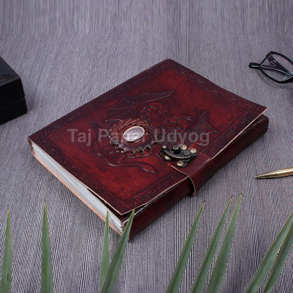 Best Price Eco-Friendly A4 Hand Embossed Brown Leather Journal White Stone Business Office Planner and Diary Notebook Items