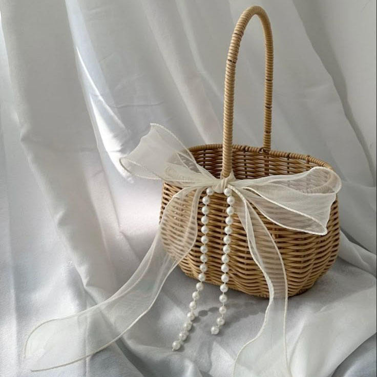 Best Price Eco-Friendly Rattan With Bow Handbag Storage Basket OEM Designs Customizable Boho Style HNH Craft