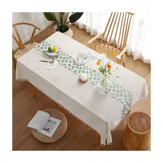 Best Price Embroidered Beige With Tasselled Home Dining Rectangle With Dust-proof Wrinkle Resistant Table Cover for Restaurants