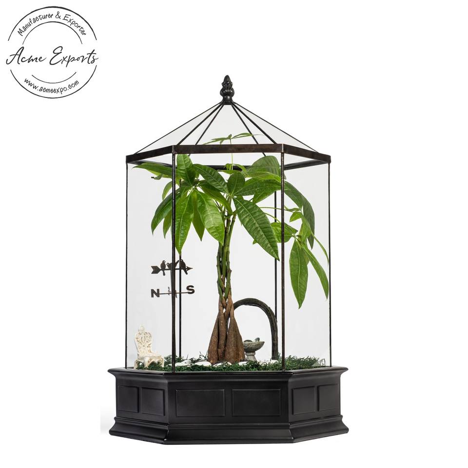 Best Price Handmade Glass and Iron Frame Hexagon Terrarium with Black Finished Used for Indoor Hanging Plants Display