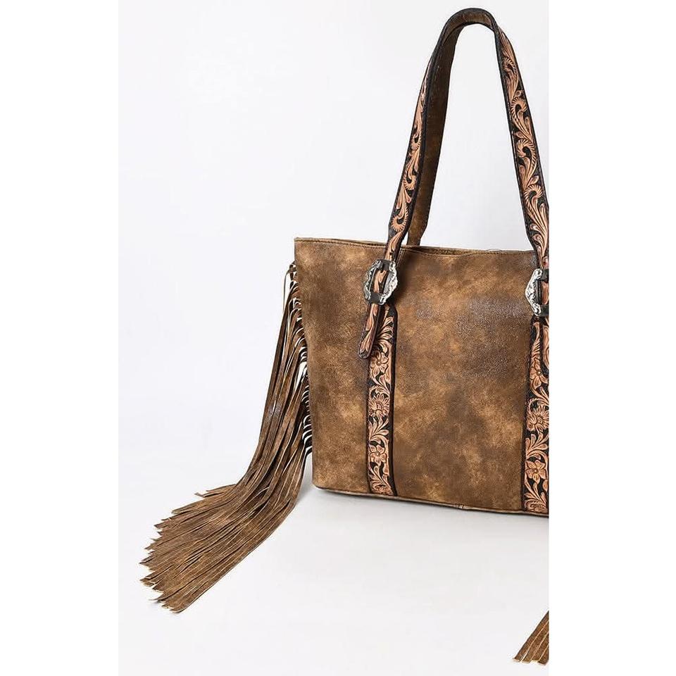 Best Price High Quality Brown Leather Floral Tooled Patch Latigo Design Shoulder Bags Purse for Women Vintage Style Hot Selling