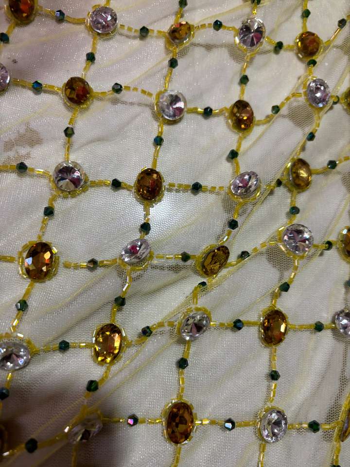 Best Price Luxury Handmade 100% Polyester Garments High Quality Beaded Fabric Zircon Woven Mesh Direct Export India Supplier