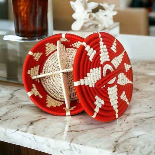 Best Price Natural Handcrafted Red Round Shape Wicker Baskets Natural Red Sabai Grass Basket Multipurpose Box for Home