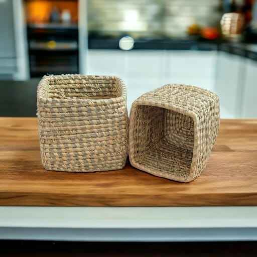 Best Price Rectangular Natural Handmade Moonj Grass Wicker Planter Set Flower Pot for Tabletop Home Decor